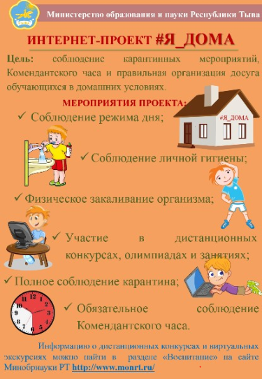 Интернет-проекта #Я_ДОМА для обучающихся образовательных организаций Республики Тыва. Ключевыми мероприятиями включены: